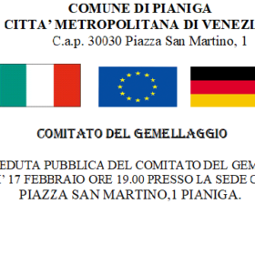 Descrizione Indizione della seduta pubblica del comitato del gemellaggio in data martedì 17 febbraio ore 19.00 presso la sede comunale Piazza San Martino, 1 Pianiga