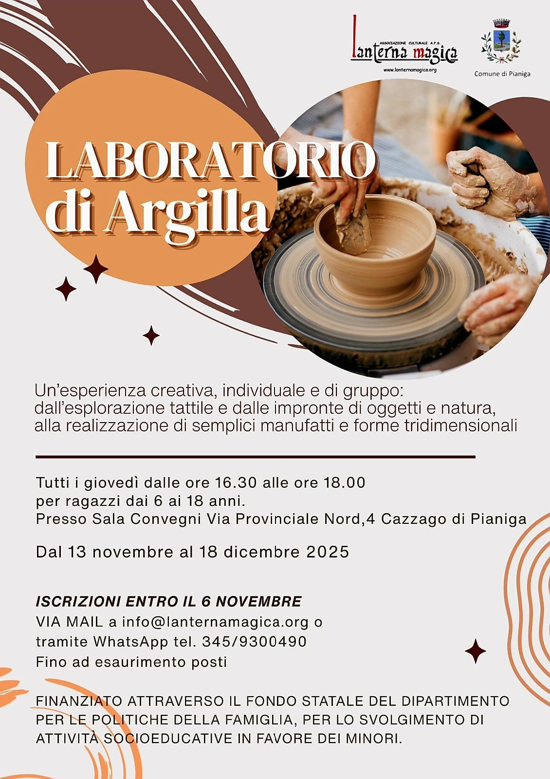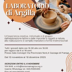 Iscrizioni entro il 6 Novembre via mail a info@lanternamagica.org o tramite WhatsApp tel. 345/9300490.