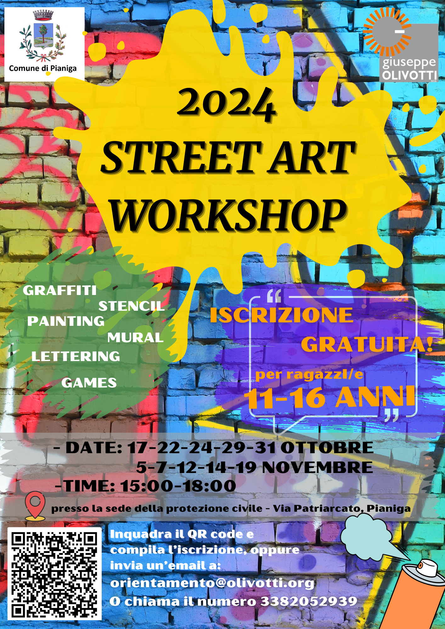 Street Art Workshop è finanziato dal piano "Politiche giovanili tra Riviera Miranese 6.0" con DGR n. 479 del 26.04.2023 all'interno del progetto "Giovani e Generattività" approvato con DGR n. 1206 del 4.10.2022.