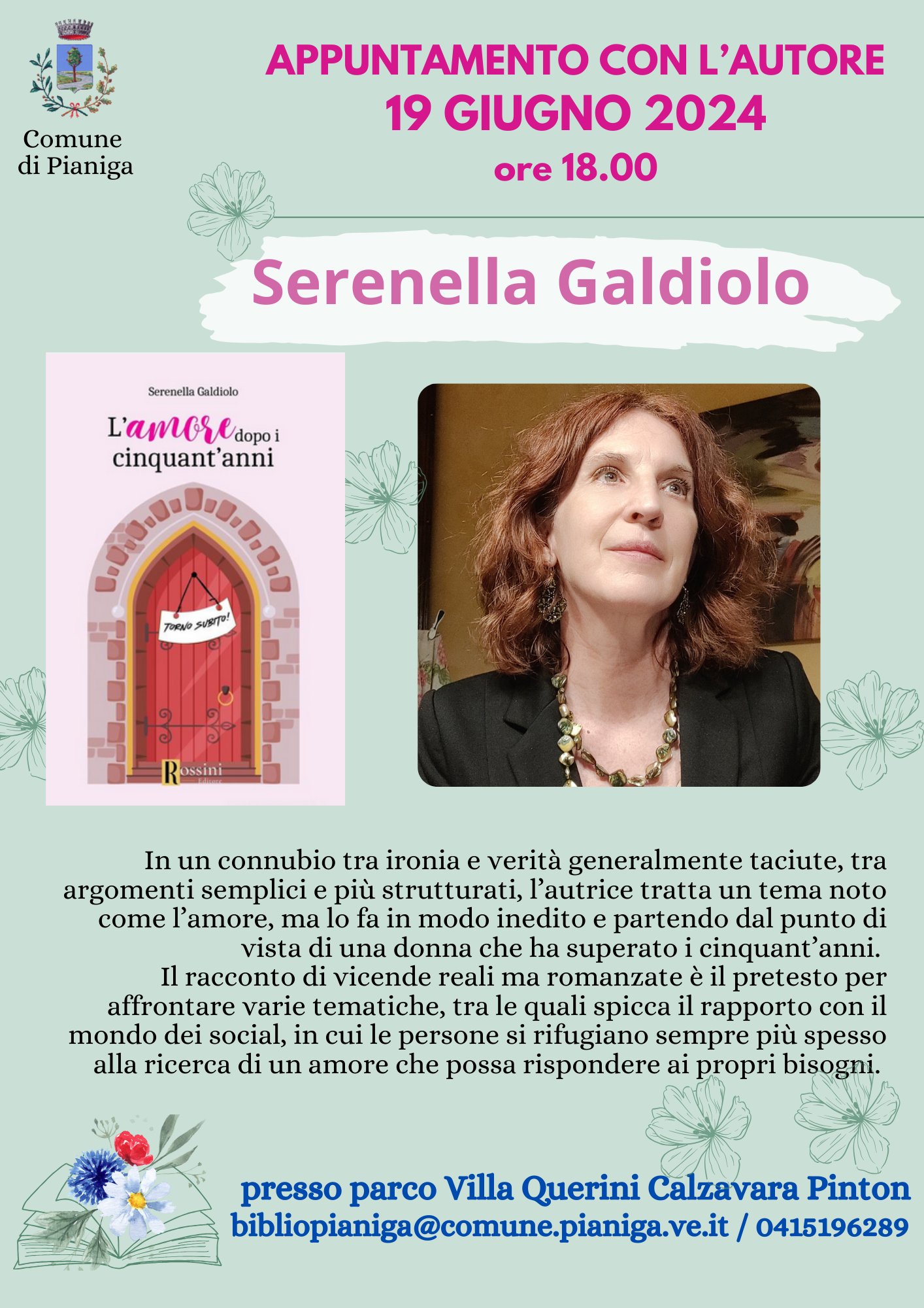 La Biblioteca organizza appuntamento con l'autore Serenella Galdiolo che presenterà il suo libro "L'amore dopo i 50 anni"