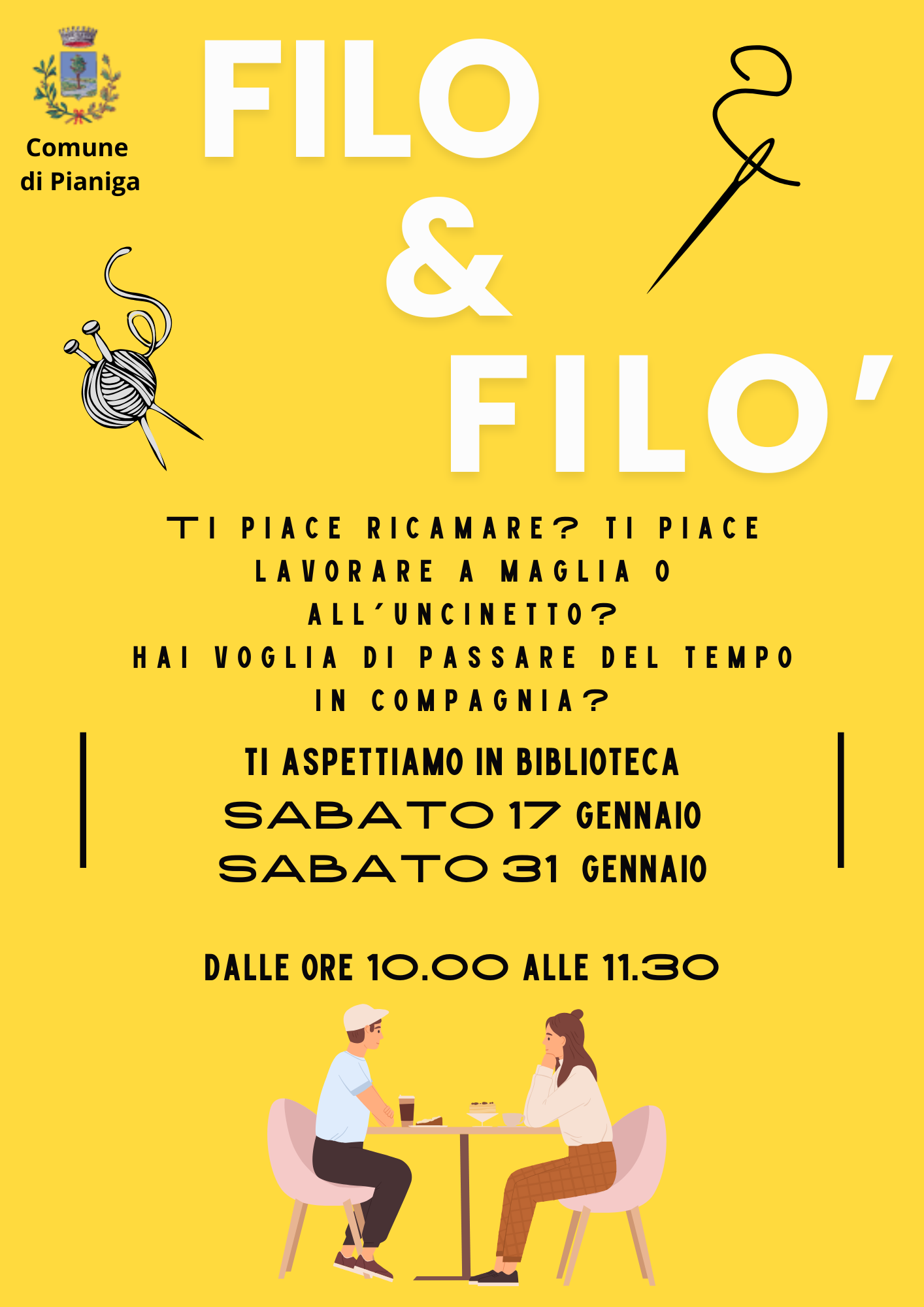 Cos'è Ti piace ricamare? Ti piace lavorare a maglia o all'uncinetto? Hai voglia di passare del tempo in compagnia? Sabato 17 e sabato 31 gennaio