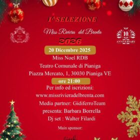 La prima selezione di Miss Riviera del Brenta sarà coronata Miss Noel RDB 2025, durante la serata saranno presentate le bellezze artistiche, storiche e paesaggistiche della Riviera del Brenta.